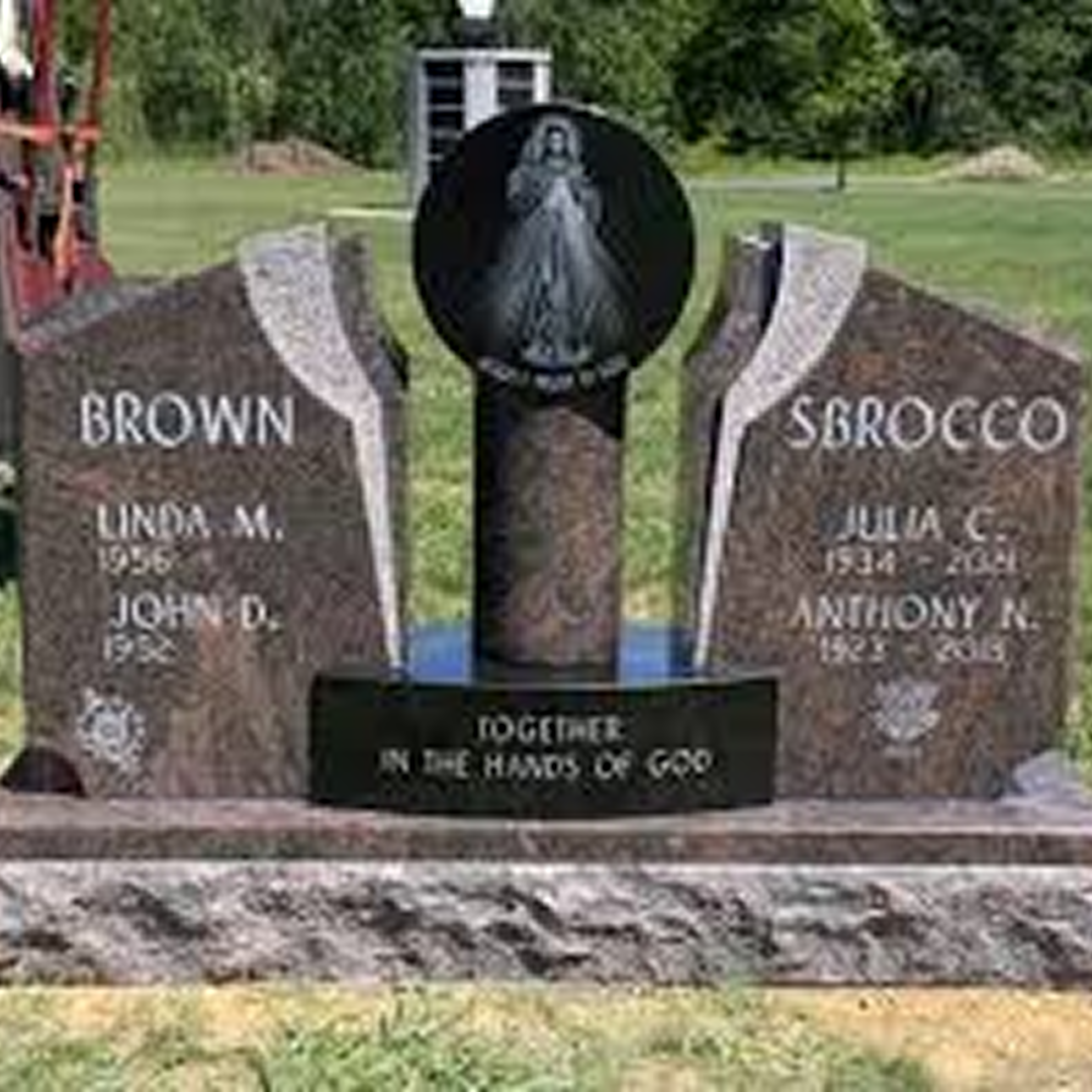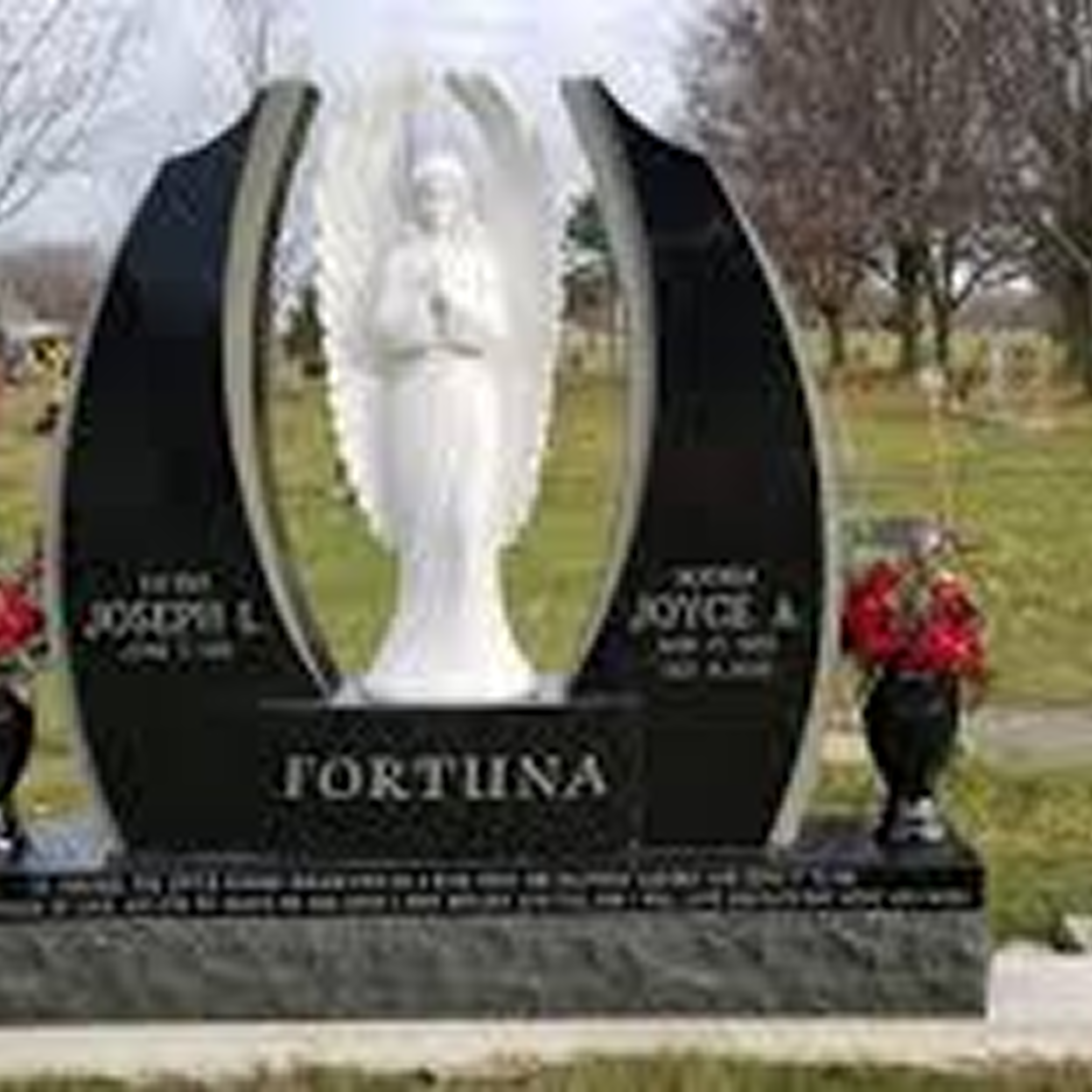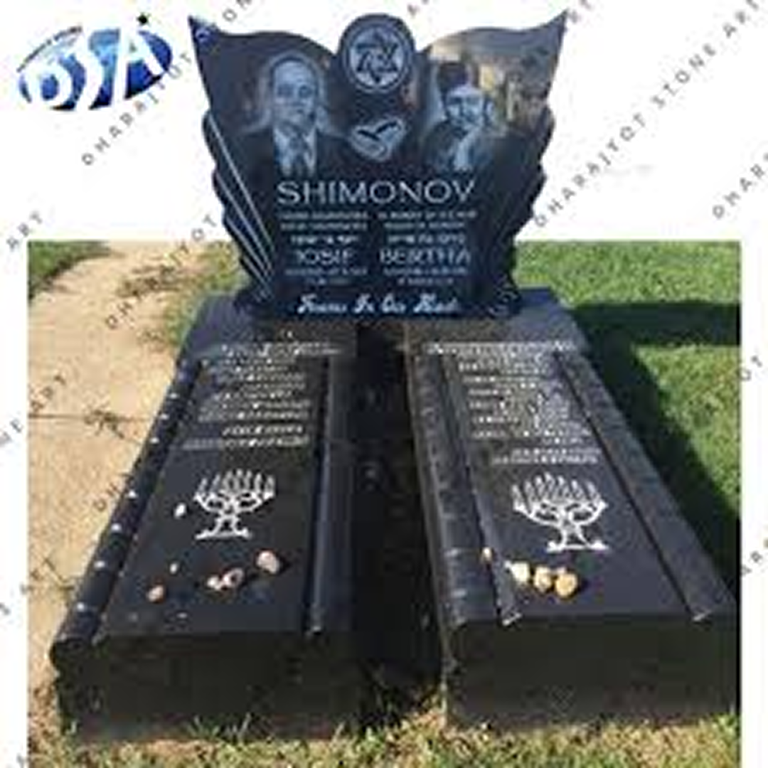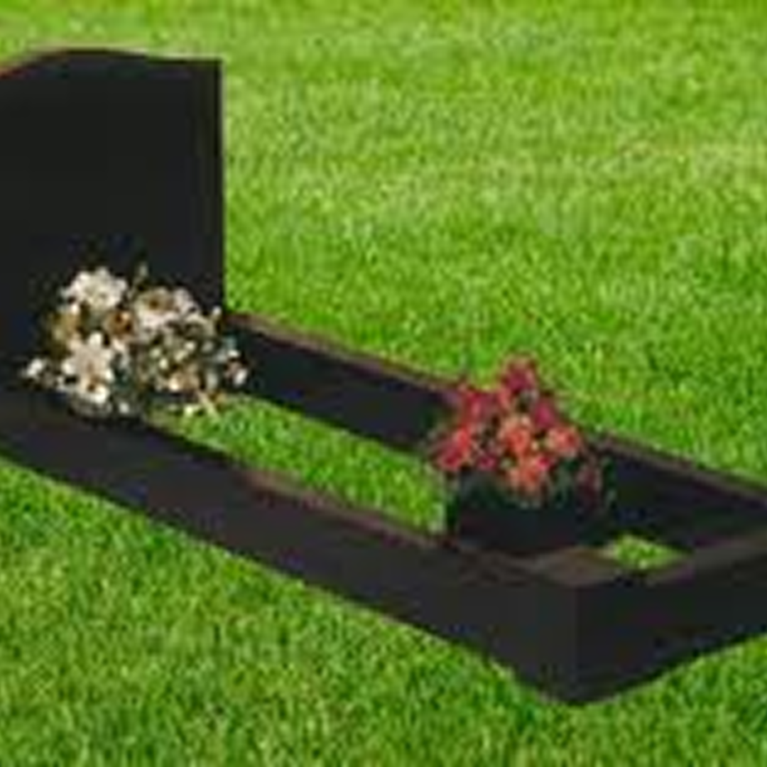A traditional ogee top headstone crafted from premium black granite.